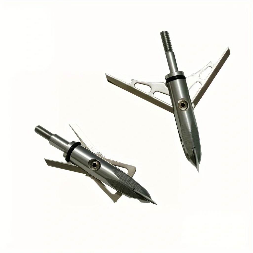 Broadheads Material: Made of aluminum and 420 stainless steel that makes the broadhead more durable and are steady when it was fired by wind deviation test. Design: The 100gr broadheads features an extremely aerodynamic, precision-machined and anodized aluminum ferrule paired for optimum blade retention and consistently reliable blade deployment.